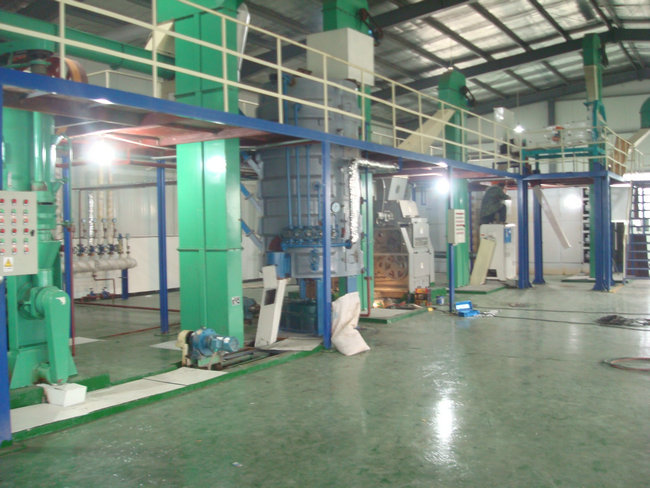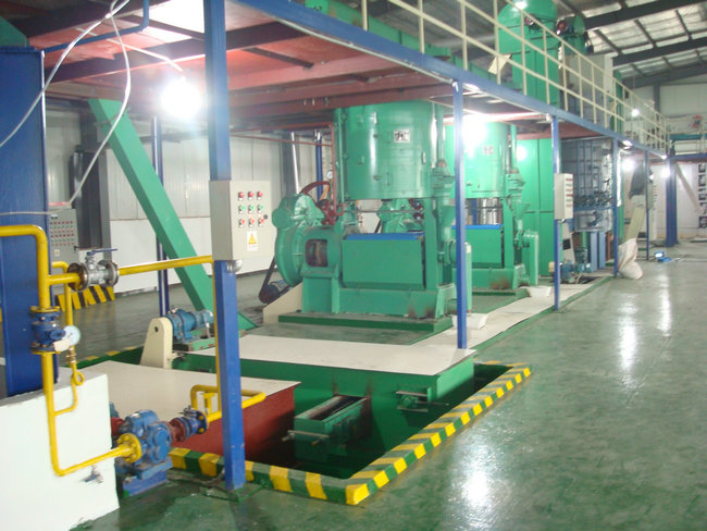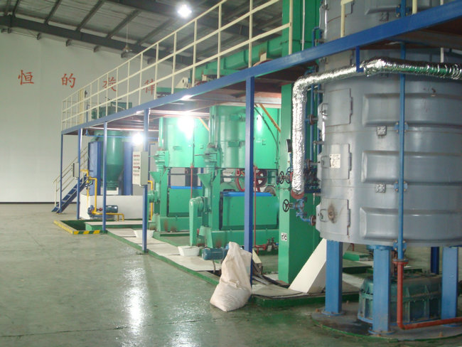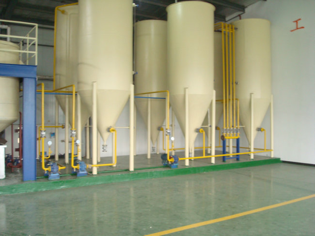 主要設備:煉油鍋、熱交換器、高效脫色塔、過濾機、析氣器、加熱器、組合式脫臭塔、脂肪酸捕集器、冷卻器、四級蒸汽噴射泵、導熱油爐機組等。